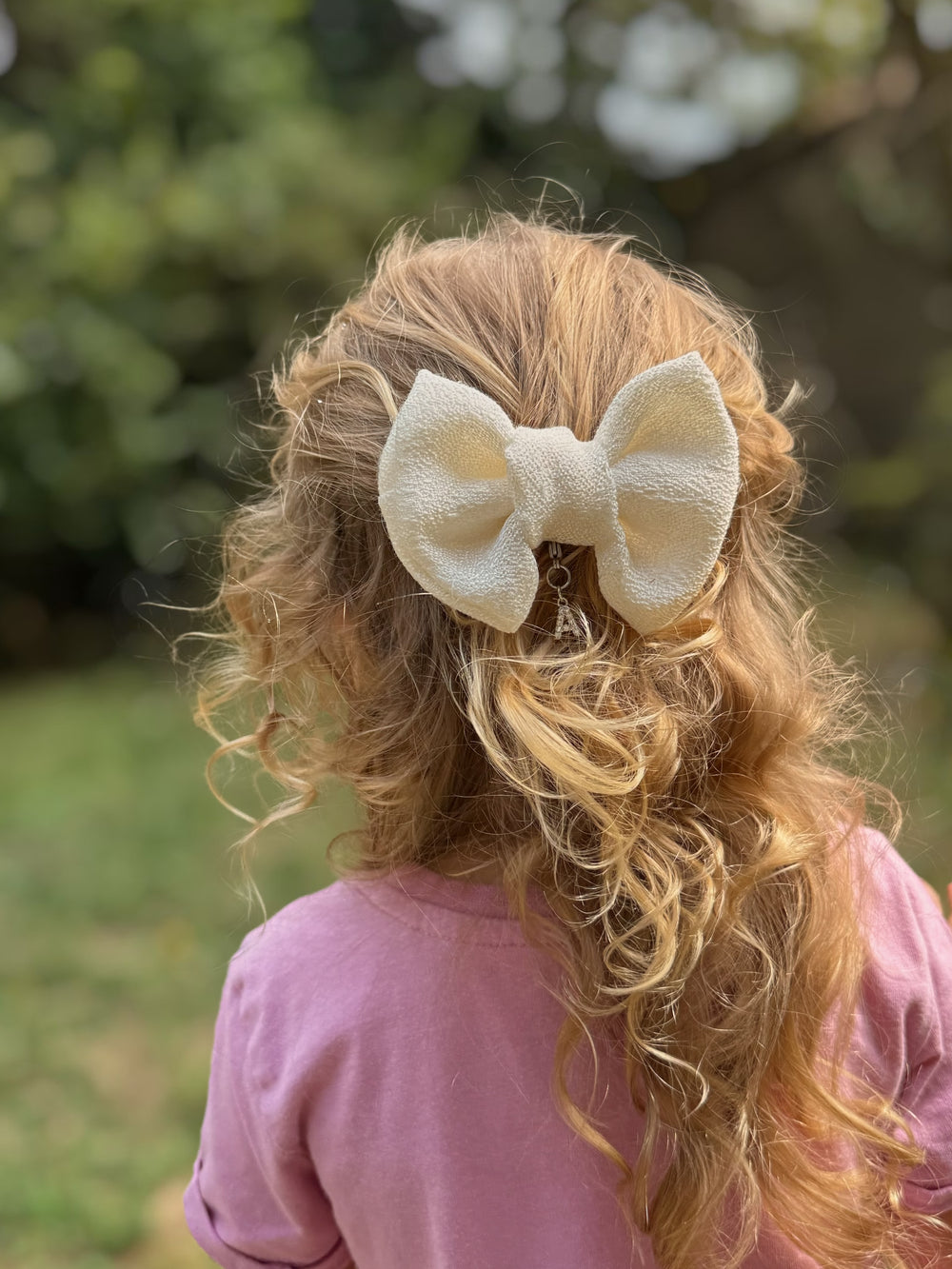 Fiocco bianco in lino e viscosa con texture leggermente in rilievo, ispirato all’eleganza soffice della panna montata